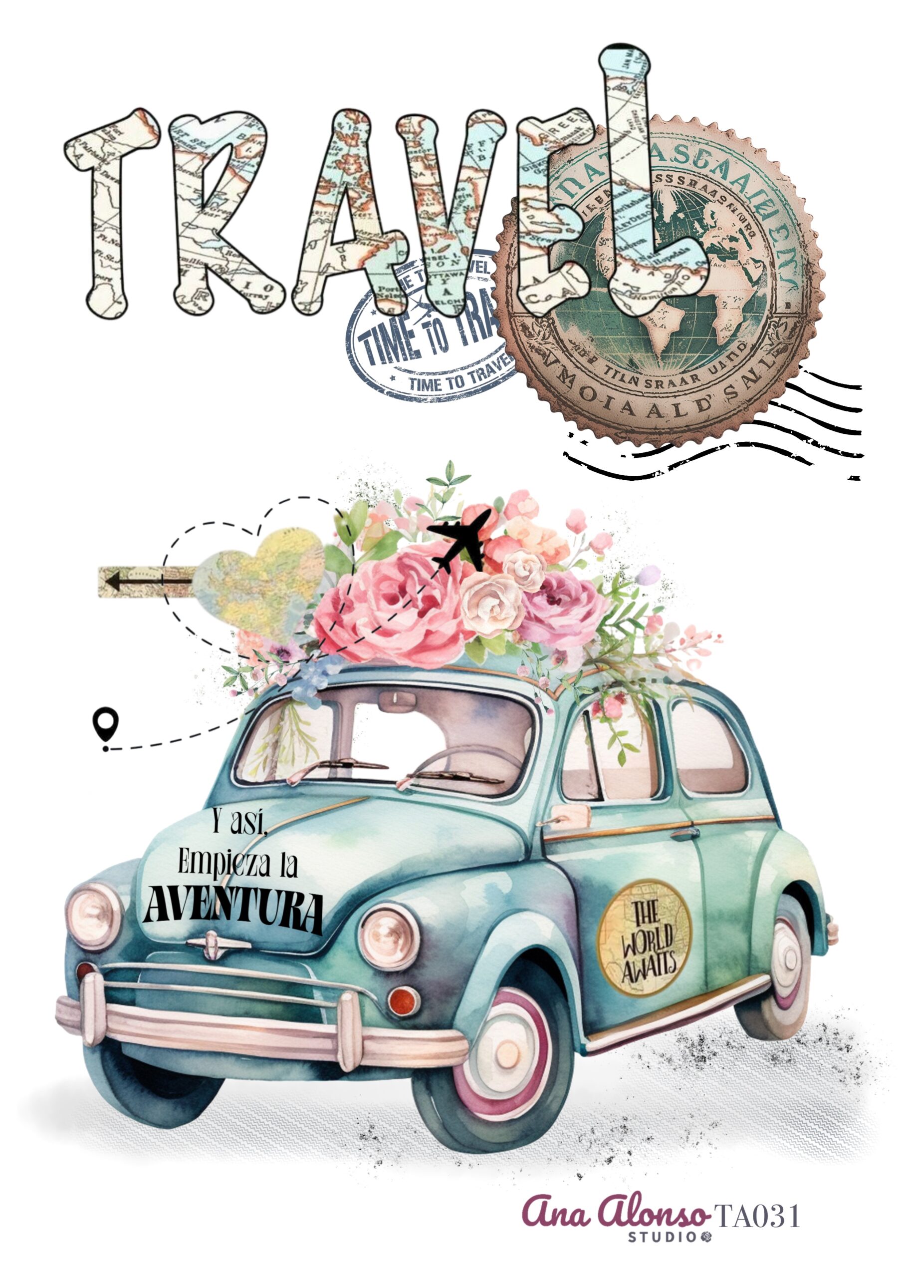 Transfer DTF textil que captura el encanto de un viaje que empieza sin prisa: un coche retro estilo Seat 600, coronado con rosas y acompañado de la frase “así empieza la aventura”. Ideal para dar un toque nostálgico y creativo a tus prendas o proyectos textiles. Añádelo a tu colección y deja que cuente historias.