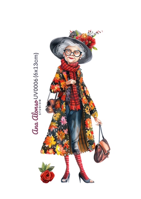 Inicio » Tienda » UV » Transfer UV DTF » abuela moderna con bolso y abrigo de flores»