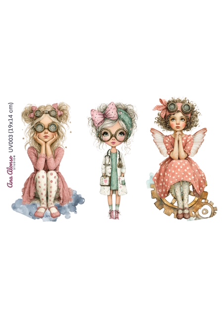 Inicio » Tienda » UV » Transfer UV DTF » tres niñas con gafas y lazos»